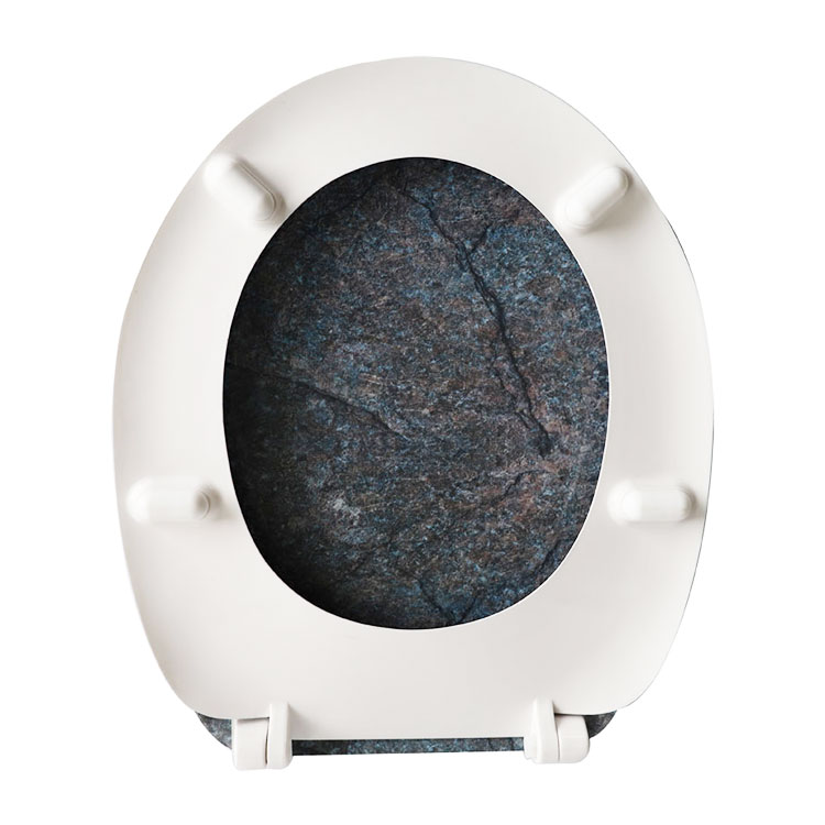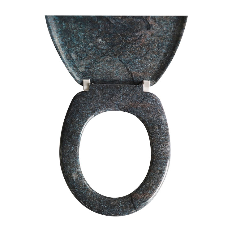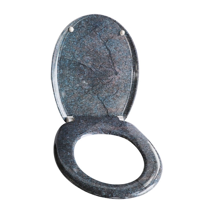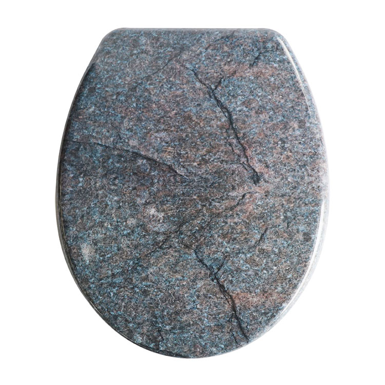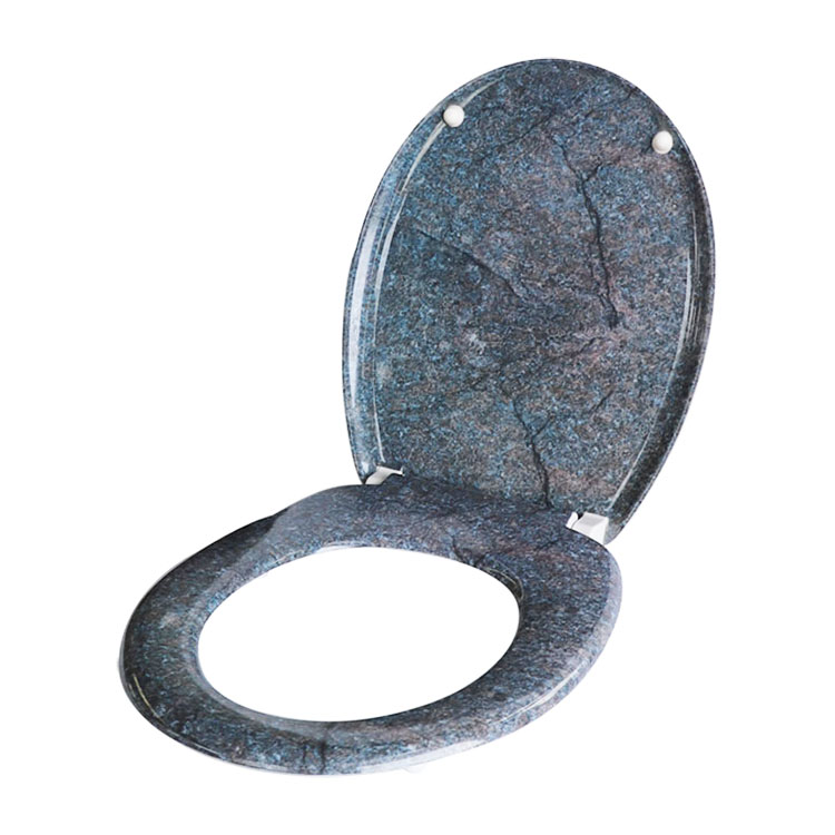 Tualeto sėdynė su raštu ar dizainu, imituojančiu tikrą marmurą, vadinama tualeto sėdynės marmuro išvaizda. Šios tualeto sėdynės dažnai turi aukštos kokybės marmuro atspaudus, imituojančius tikrą marmurą, ir yra pagamintos iš tvirtų medžiagų, tokių kaip plastikas arba tvirtas plastikas, MDF. Marmurinės klozeto sėdynės pranašumas suteikia jūsų vonios kambariui prašmatnią ir rafinuotą išvaizdą be didelių išlaidų ir tikro marmuro priežiūros.